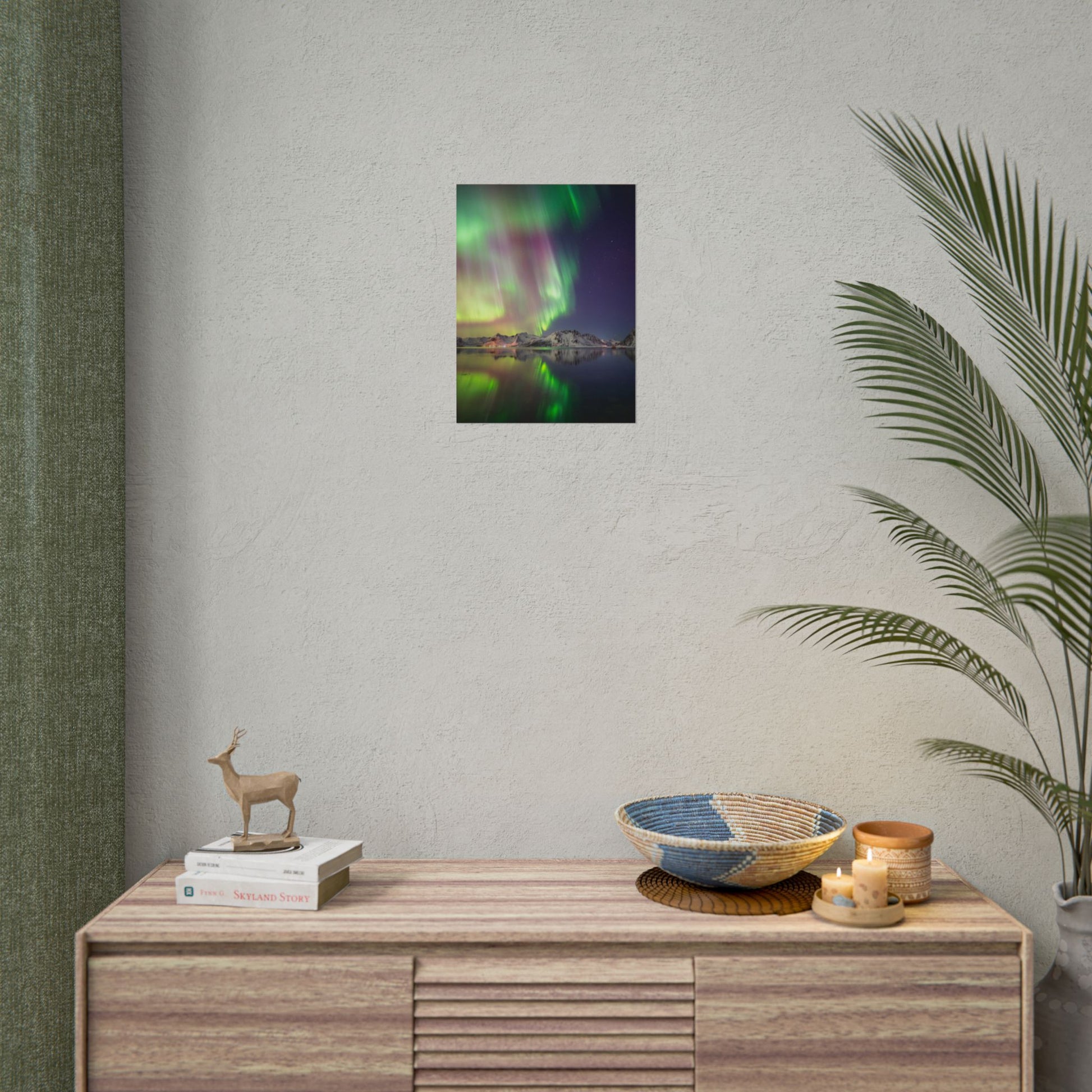 Experience the mesmerizing beauty of the aurora with these high-quality posters. Perfect for creating a calming and mystical atmosphere in your living space. Ideal for nature lovers, photographers, and those who appreciate serene artwork. Great for decorating your home or office during the winter season or for anyone who loves the Northern Lights.