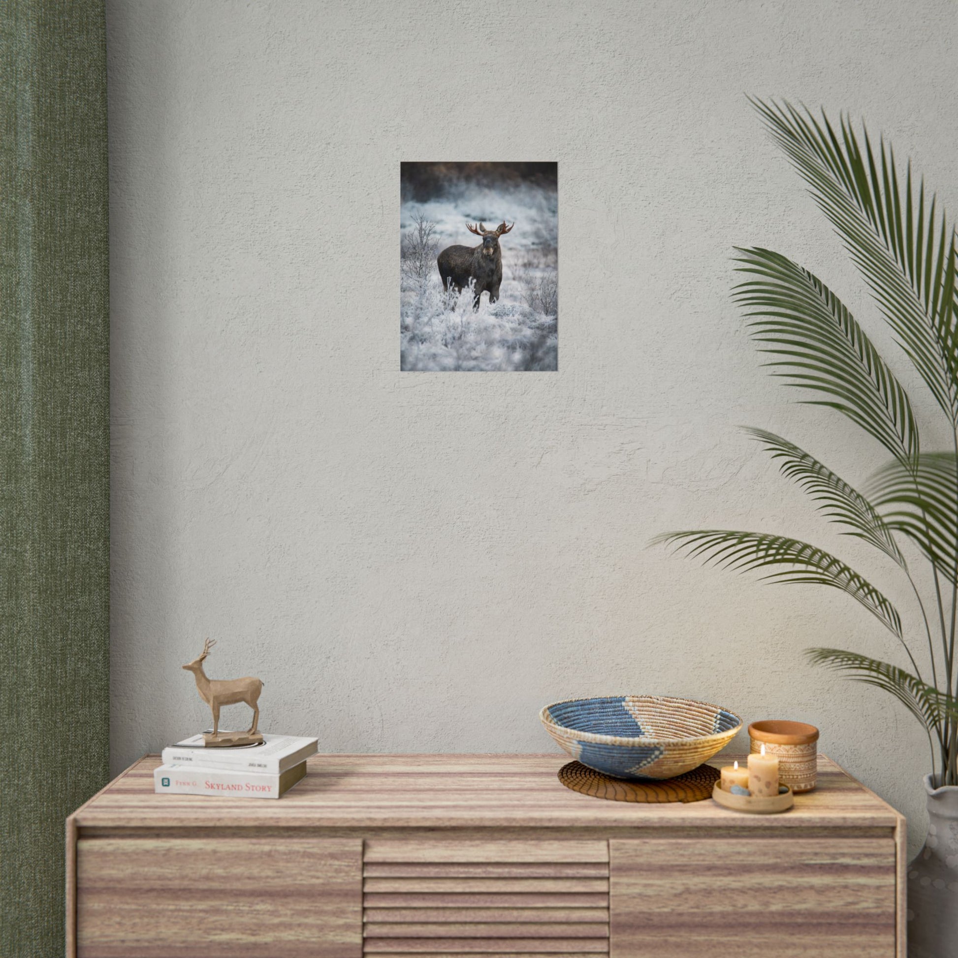 This moose-themed poster transports you to the snowy landscapes of Norway, creating a cozy and rustic ambiance in any room. Perfect for nature lovers, outdoor enthusiasts, and anyone who appreciates wildlife art. Ideal for decorating a cabin, living room, or home office. Great for gifting during the winter season, Christmas, or as a housewarming present.